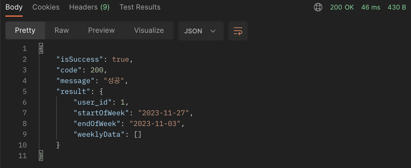 ๊ทธ๋ฆฌ๊ณ diff๋ฅผ KST.date()์ ๋ฃ๊ณ ํฌ๋งท์ ๋ฐ๊ฟ startOfWeek์ ๊ตฌํ๋ค. endOfWeek์ startOfWeek์ 6์ผ ๋ค๋ก ๊ตฌํ๋ค.