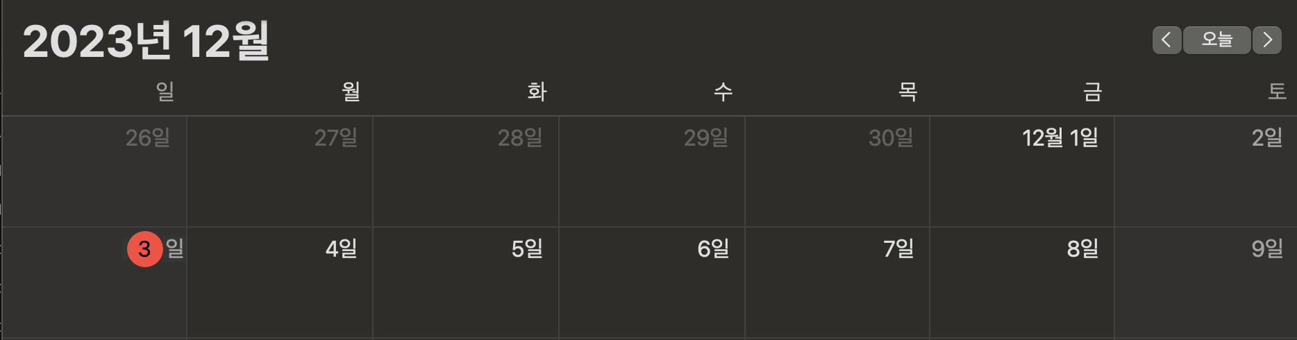 ์ฝ๋ค ๋ณด๋ฉด ์ 2023๋ 12์ 3์ผ์ 3์ผ ์ ์ด 2023๋ 11์ 27์ผ์ด ๋๋์ง ๊ถ๊ธํ ํ ๋ฐ ์ด๋ ์ถํ ๋ค๋ฅธ ํฌ์คํ ์์ ๋ค๋ค๋ณด๊ฒ ๋ค.